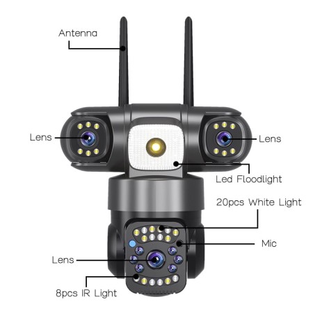 9MP (3MP+3MP+3MP) 4G SIM IP Camera 3 Lens with 3 Screen Auto Tracking